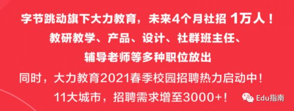 2021年春节过后不久的2月末,字节跳动教育以大力教育独立品牌名义,再次向外宣布,未来4个月将面向社会招聘1万人。