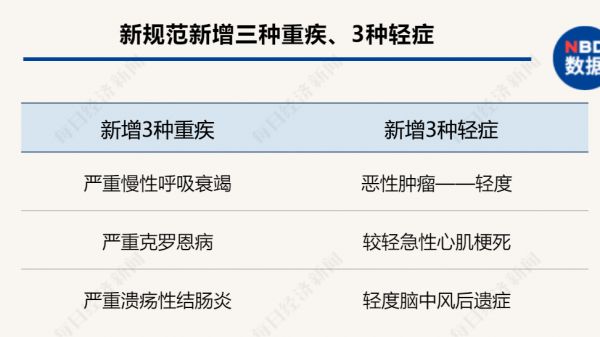 一是以恶性肿瘤为代表的重大疾病分级,典型如“恶性肿瘤”名称更改为“恶性肿瘤——重度”,分级后部分视为轻度,依据新定义,原位癌既不是重疾,也不属轻症;