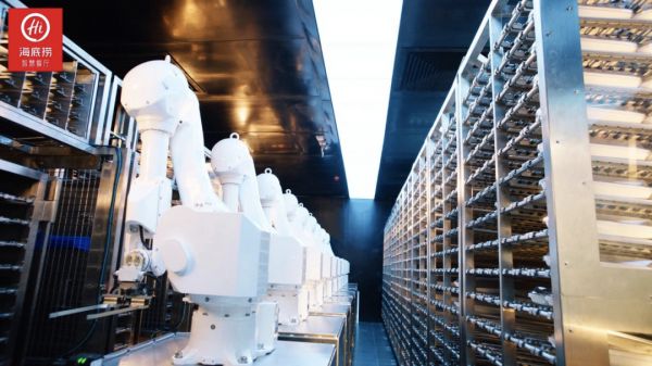 传菜过去一直是海底捞最累的工作,为了减轻员工负担、提升工作效率,海底捞分店试水使用传菜机器人。此外,海底捞还使用起机械臂智能配菜、自动配锅机流水线配锅,以及厨房信息管理系统。