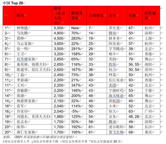 二、中国上榜富豪总财富超29万亿元,钟睒睒跻身前十