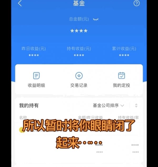 我没有借钱买,所以心态还行。连续大跌我就干脆关闭账户不看了,闭上眼睛就不亏了。很像抖音上很火的背景音乐,"终于将你眼睛闭了起来"……