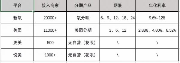 广东一家连锁机构的负责人对WEMONEY研究室表示,他们没有和美团、新氧等分期合作,现在合作的机构有海尔消金、捷信消金、TCL、美分期等,其利息要比美团他们稍高,但这些老牌机构利率透明,同样受用户欢迎。