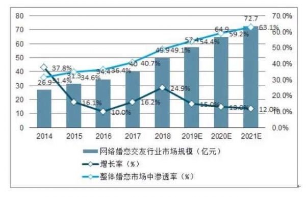 不论是积极挑选对象增加分母,还是抱着破罐破摔的消极心态,无法否认的是,越来越多的年轻人开始尝试以线上交友的形式解决“个人问题”。网络婚恋交友行业市场规模也日渐提高。