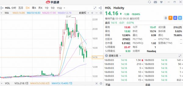 从股价表现上看,HOL已经历一轮爆炒,目前股价持续回调。