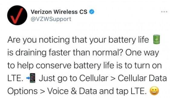 美国最大的无线通信公司威瑞森电信(Verizon)昨天在其官方推特账户VZWSupport发了一条信息。