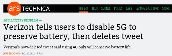 2020年10月,Ars的一篇报道显示,iPhone 12和12 Pro的5G功能似乎对电池寿命有很大影响,特别是使用毫米波时。