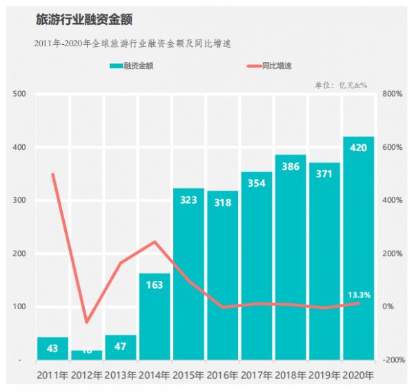 现在,国内旅游行业的复苏已成定势,资本已经开始竞相布局。Fastdata极数发布的《2020年中国在线旅游行业报告》显示,2020年旅游行业融资额创新高,达420亿元。在行业低谷期,资本大举抄底旅游资产。