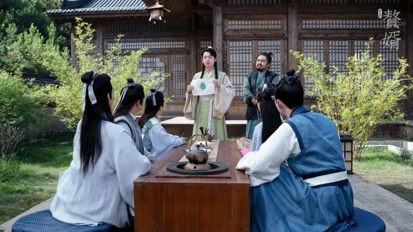 在这里,赘婿们每天要背诵《赘婿经》,“妻子远庖厨,夫君扫厅堂,妻子三竿起,丈夫煲好汤”,同时学习育儿喂奶,稍有差池就要被罚站、罚跪,男性安心学做赘婿服务妻子,在苏檀儿的店铺里,妻子训斥丈夫时说,“我也把你送到男德学院去”,让人恍惚以为这是一个女性社会地位高于男性的女尊世界。