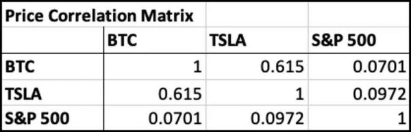 其实这种相关性甚至早在特斯拉买入比特币之前就存在了。2020年5月,《福布斯》专栏作者Leeor Shimron曾将特斯拉、比特币和标普500指数做过一个对比。他发现特斯拉和比特币在此前6个月表现出0.615的强相关,远超这两种资产与标普500指数之间的相关性,这意味着比特币和特斯拉的投资者很有可能是具有类似价值观的同一批人。