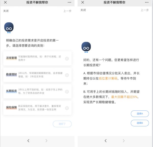 「投前问卷的问题更细致了、投资策略会匹配人生阶段、投后推送的资讯更多一些……」部分投资者提到了购买投顾产品与过往买基金时的差异。
