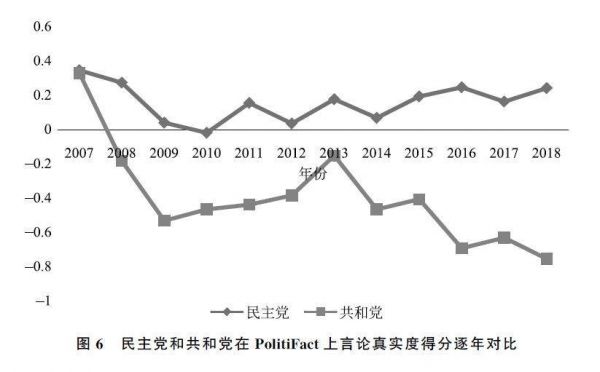 根据此赋值方法计算共和党和民主党逐年的真实度得分,结果如图6。