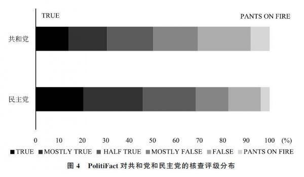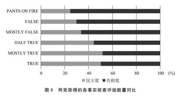 在PolitiFact针对共和党和民主党的事实核查结果中,共和党人士发表错误言论的比例确实要高于民主党(见图4和图5)。