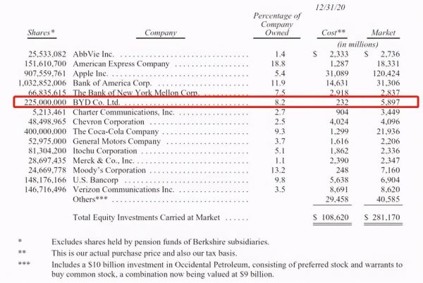 每年巴菲特的致股东信都会引起全球投资者的关注和分析。上月,巴菲特旗下公司伯克希尔·哈撒韦公布了年报,也顺势公布了公司前十大重仓股。出人意料的是,比亚迪股份首次成为巴菲特的前十大重仓股,且是唯一进榜的中国公司。