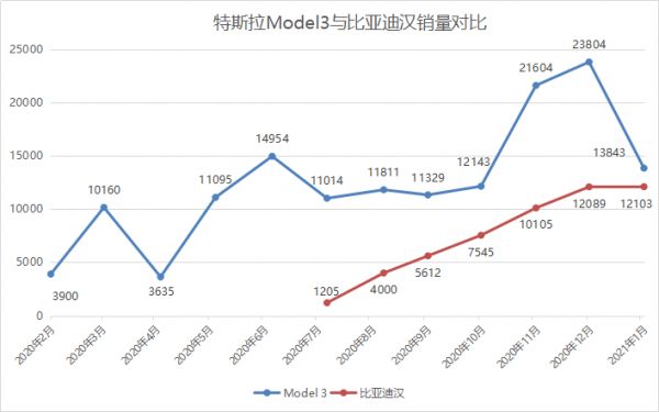 现阶段,比亚迪在国内最大的竞争对手或许还是特斯拉。2020年7月,比亚迪汉上市,销量连续6个月走高,却始终低于特斯拉中国Model 3的销量。