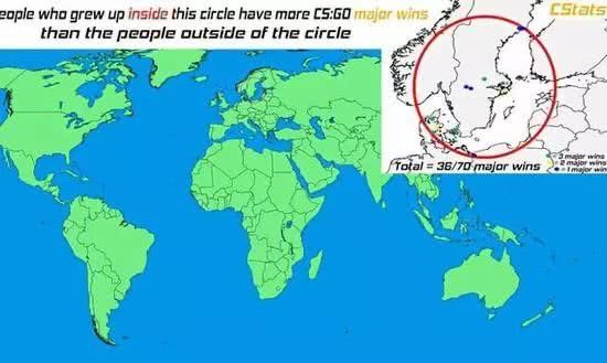 季中赛首次来到北欧,但电竞对北欧来说早已是常客。许多明星电竞选手就来自于北欧地区。比如来自芬兰的DOTA2选手Topson和Jerax。在TI8夺冠后,获得了芬兰女王和总统的接见,同样作为芬兰星际争霸2选手的Serral在19年芬兰独立日宴会上也得到了总统的接见。而Topson和Jerax的队友Notail则来自离芬兰不远的丹麦,我们所熟知的G2中单选手Caps和老队友Wunder都来自丹麦。北欧人在电竞场上确实不容忽视,11个DOTA2 Major中,北欧人就拿下了8个。有网友在Reddit上发了一张地图,并表示“拿过CSGO Major 的世界冠军有一半出自这里。”图中被圈起来的地方正是北欧。其中最夸张的一次是14届Major,参赛的70位来自全世界的选手有36位就来自这个圈。