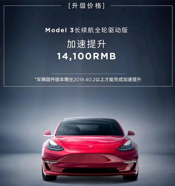 2019 年,特斯拉推出「加速性能提升包」,可以通过 OTA 进一步释放 Model 3 ⻓续航全轮驱动版双电机的冗余性能,将百公里加速从 4.4 秒缩减至 3.9 秒,用户需要支付 2000 美元。