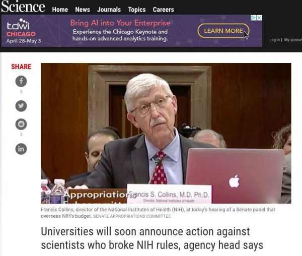四月初,美国国立卫生研究院(NIH)院长一席话预示着科研界即将掀起一场暴风雨:在接下来的一两周时间内,NIH将对各个大学违反NIH规定的科学家采取行动,有人将被开除。