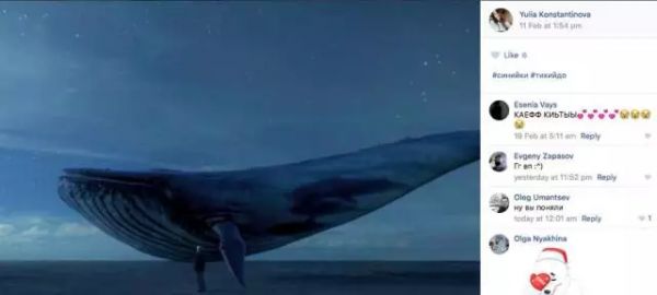 ● 2017年2月,俄罗斯一位自杀少女在最后一条动态中发了一张蓝鲸图片,很可能是后来“蓝鲸挑战”的得名原因 / 网页截图