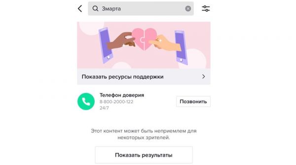 到3月2日,TikTok已经删除了相关标签“#3марта(3月3日)”, 并清理了“#суицид(自杀)”等标签下内容,TikTok俄罗斯发言人埃雷梅耶娃对俄罗斯媒体表示,平台算法足以自动识别并删除鼓励和诱导自杀内容,91.9%的自杀相关短视频都会在上传后的24小时内被自动删除。现在,对于“3月3日”的搜索结果已经被代之以一个自杀干预热线电话。