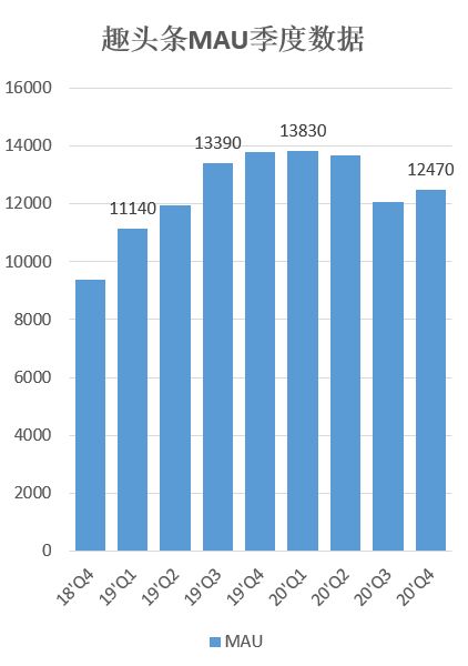 以MAU数据为例,2020年Q4的数据是1.247亿,同比2019年Q4的1.379亿出现严重下滑。这里有一个背景需要交代,如果说2020年Q1和Q2用户数据创新高是受到疫情红利的影响,那么2019年Q4以前社会还处在正常运转阶段,趣头条同比数据下滑是产品衰退的真正下滑,和疫情没有任何关联。