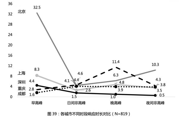 时隔五年,孙金云团队调研的结果显示,今天的北京仍是中国最难打车的城市,早高峰期间,北京平均等待时间约需要32.5分钟,上海约为8.3分钟,深圳为4.4分钟,重庆2.8分钟,成都1.6分钟。