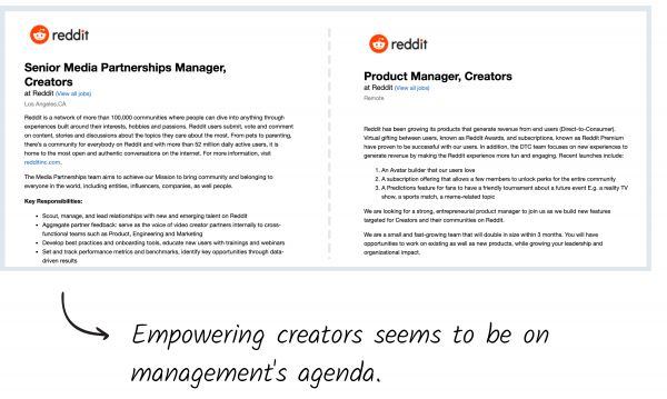 同样地,Reddit的“职业”页面进一步证明了他们的这种兴趣。该公司正在招聘这一领域的社交媒体合作伙伴经理以及产品经理。