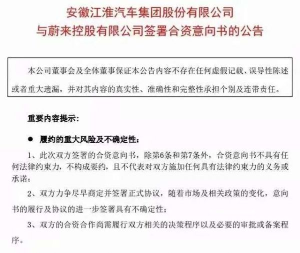 近日,安徽江淮集团有限公司(以下简称“江淮”)和蔚来控股有限公司(以下简称“蔚来”)正式签署了合作协议,双方将在合肥共同成立合资公司,拟定名为江来先进制造技术(安徽)有限公司(以下简称“江来制造”)。