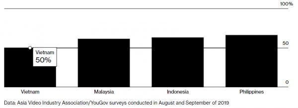 目前,越南的观众只要一看到网飞的《璀璨帝国》(Bling Empire),和迪士尼的旺达幻视(WandaVision)等热门剧集推出了,就可以在盗版网站上观看了。一个受欢迎的盗版网站,甚至使用网飞独特的红色字体作为自己的标识。消费者还可以使用非法的流媒体应用程序和设备(可以在当地的电子市场上买到),来观看优质内容。