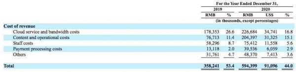 招股书显示,2002年知乎的营收成本为5.94亿元。其中云服务和带宽成本、内容和运营成本是知乎营收成本中占比最大的两项。