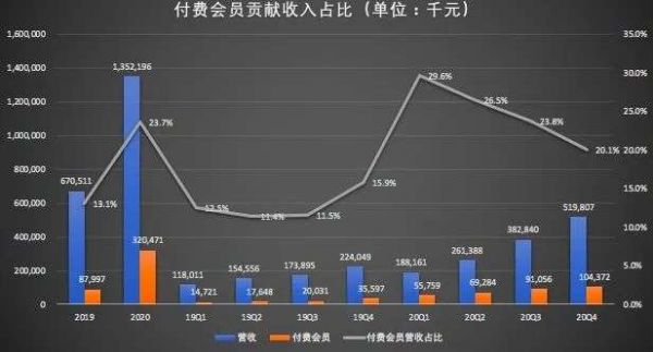 根据B站财报数据显示,2020年四季度,B站月付费用户达到1790万,同比增长103%,整体付费率从2019年四季度的6.8%攀升至2020年四季度的8.9%。
