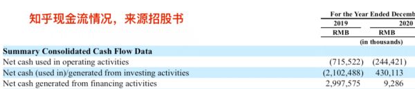 这决定了知乎目前还不能完全依靠业务进账来满足经营投入与资本性开支,需要通过筹资弥补。招股书显示,2019年其融资现金流净流入近30亿元,即主要来自百度与快手联合投资的F轮4.34亿美元,而2020年知乎没有大的筹资行为,融资净现金流进账900多万,主要是处理股票期权所得。截至2020年末,知乎账面上现金及等价物价值9.6亿元,然后就有了这次的IPO。