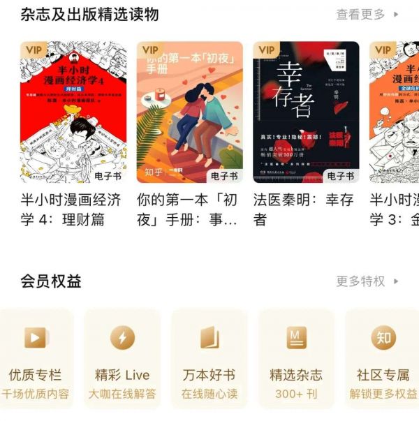知乎部分会员权益