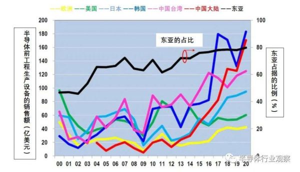 “由台转陆”的蒲得宇曾表示,从长期投资角度出发,半导体中心将从台湾转向大陆,这也是他跳槽的主要原因。根据eetimes的观察,在2010年后,中国大陆就在半导体前后工程设备市场上实现了飞速发展,成为下一个半导体中心。