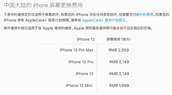而之所以谈到维修权经常会将苹果作为案例展现,是因为它作为全球最大手机制造商之一,对电子产品维修的保留态度。首先就是官方维修价格高,以 iPhone 12 为例, 它的屏幕维修价格达到了 2149 元,几乎是产品价格的三分之一。