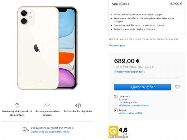苹果法国官网中 iPhone 11 的可维修评分