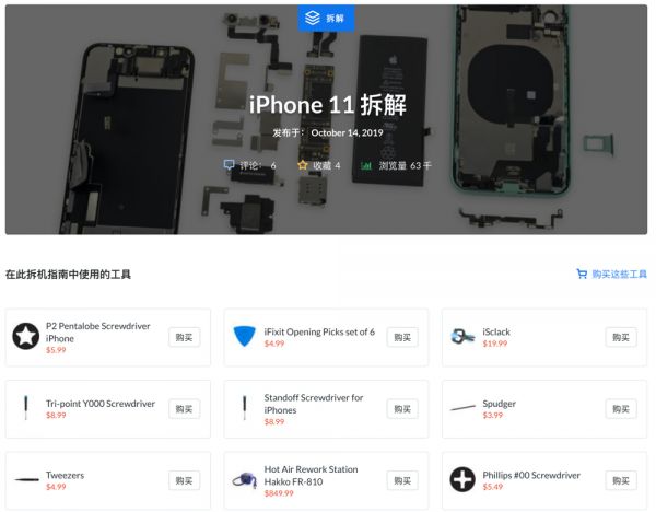 iFixit 会在拆解教程中销售维修工具