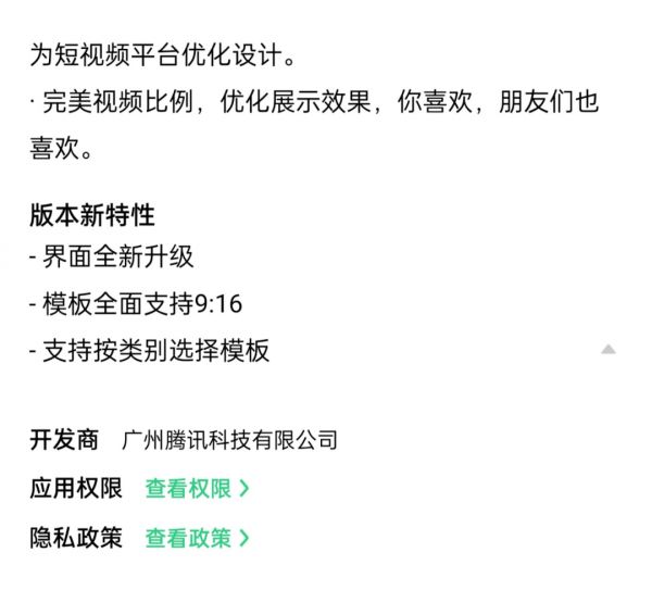 去年腾讯收购了短视频创作工具VUE后后推出一款短视频创作工具“秒简App”,(已更名秒剪),支持生成视频后一键发布至视频号。秒剪App的产品描述中“完美视频比例,最佳展示效果”指向的正是6:7的视频号比例。