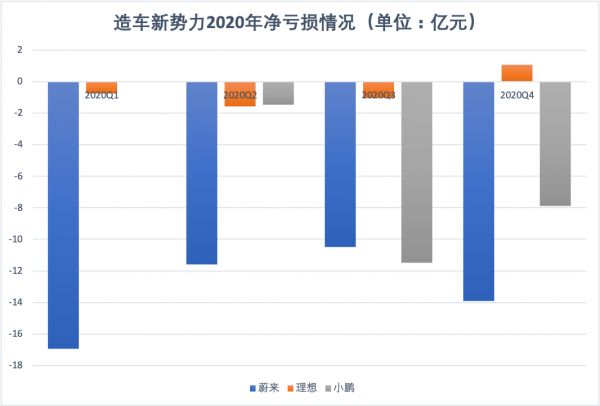 用户听了这个数据高兴,投资者听了就要抹眼泪了。2020年,随着小鹏和理想相继在美股上市,新势力赔钱造车的旗帜,也有更多人扛了起来。