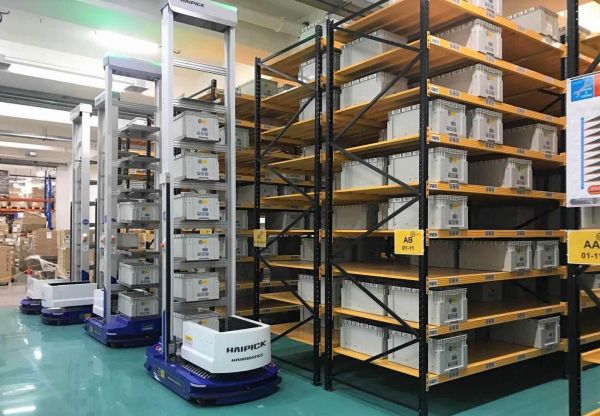 双深位料箱机器人HAIPICK A42D于香港某电商仓库运行