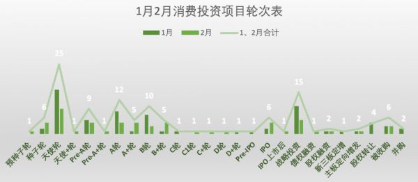 从1-2月对比来看,1月在早期轮次中更为集中。2月在B轮后,IPO数量要比1月数据稍高。
