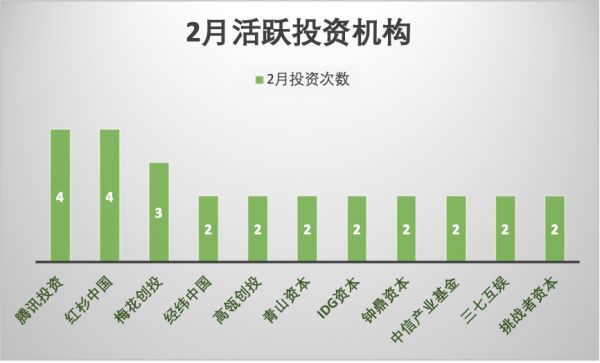 从项目方来看,2月投资明显呈现出大额、偏爱成熟项目的特征。根据统计,投资金额TOP10项目中,前五名均是二月份进行的融资项目,前十中有7起是二月融资事件、3起是一月融资事件。