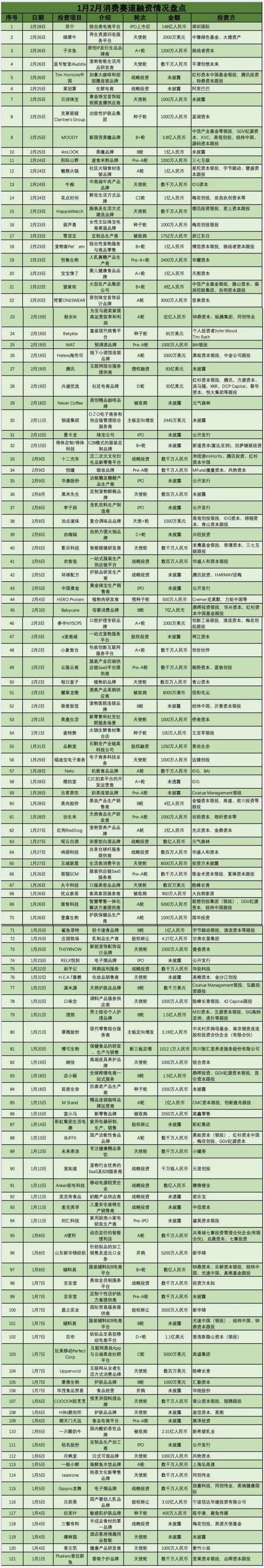 综上所述,2月的投融资情况与1月相比,会持相对谨慎态度。不过从整体趋势来看,新国货新品牌兴起势不可挡,在此趋势之下,消费赛道依然会是资本方持续看好的赛道。
