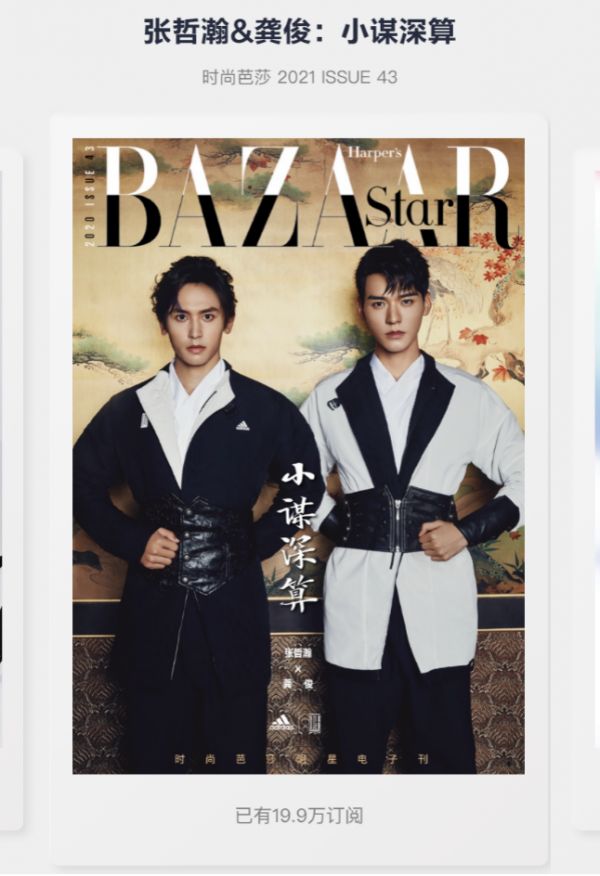 就在《山河令》横扫社交网络之前,芭莎2021年3月号迷你芭莎(号称纸质正刊电子版)拍摄了《终极笔记》的瓶邪组合——曾舜曦X肖宇梁,证明了mini Bazaar的在电子售卖上的空间。