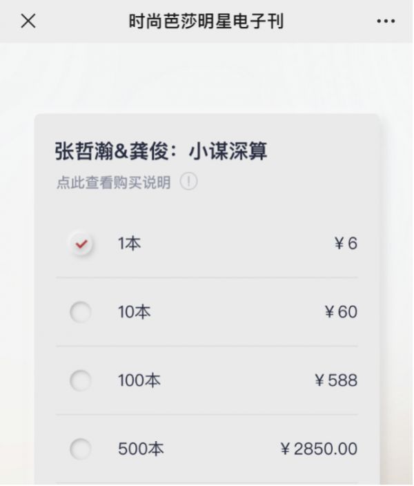 截止3月9日,《山河令》两位主角龚俊、张哲瀚的芭莎电子刊,「小谋深算」明星电子刊的销量已经接近20万,销售额接近120万。