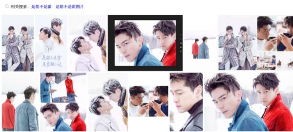 浏览器内检索该关键词,映入眼帘的就是芭莎在2016年3月号为胡歌与霍建华拍摄的雪地封面。