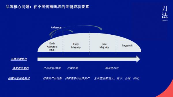 a.) 上图从最左侧的早期用户,能够持续传播到右边的主流用户,需要产品的价值点和购买理由具备较强的普适性,否则就会陷入小而美的困局;