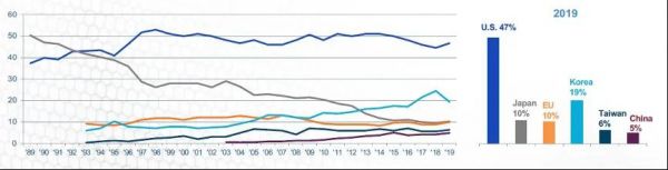 全球芯片产业链占比资料来源:WSTS, SIA, IHS Global, PWC
