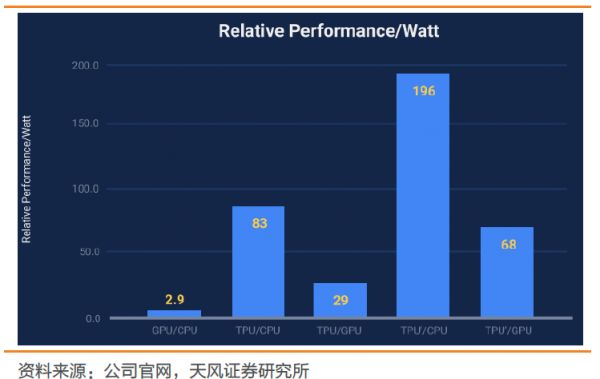 第一代TPU实质上是一颗专门为机器学习和谷歌深度学习框架TensorFlow量身打造的ASIC芯片。该芯片从2015年开始在谷歌云平台数据中心使用,能让机器学习每瓦特性能提高一个数量级,相当于摩尔定律中芯片效能往前推进了七年或者三代。2017年谷歌发布第二代TPU,可以用于训练,应用领域也从图像搜索、街景、谷歌云视觉API、谷歌翻译、搜索结果优化以及AlphaGo围棋系统等任务进一步扩展到图像和语音识别等大型机器学习模型训练。
