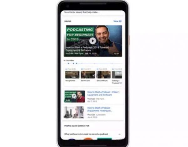 在2019年,谷歌也推出了“搜索视频内容”这一新功能,其原理是拉取YouTube视频描述中的“时间戳信息”, 用户可以快速定位教程类视频和长视频中的关键内容。