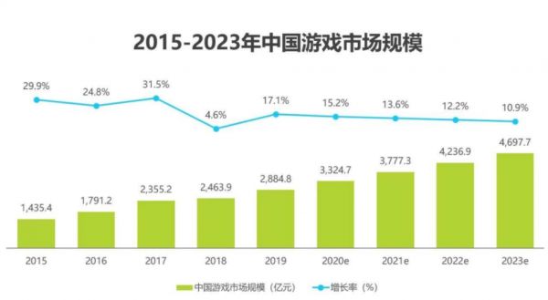 根据艾瑞咨询发布的《2020年中国移动游戏行业研究报告》,近年来,移动游戏市场增速基本维持在15%以上,未来三年这一增速将继续维持在10%以上。